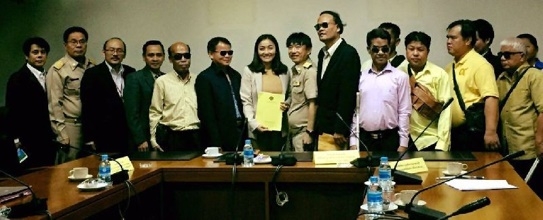 นางมัลลิกา บุญมีตระกูล มหาสุข ประธานมูลนิธิมัลลิกาเพื่อประชาชนและอดีตรองโฆษกพรรคประชาธิปัตย์และกลุ่มองค์กรเครือข่ายนิติบุคคลเพื่อคนพิการจำนวน 20 คน