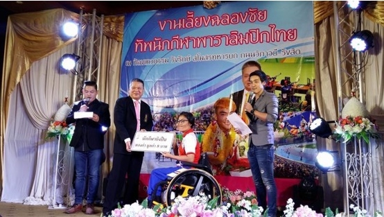 นายชูเกียรติ สิงห์สูง นายกสมาคมกีฬาคนพิการฯ เป็นประธานมอบรางวัลให้ทัพพาราลิมปิก เป็นสร้อยคอทองคำหนัก 52 บาท รวมมูลค่ากว่า 1,151,800 บาท ในงานเลี้ยงฉลองความสำเร็จนักกีฬาพาราลิมปิก