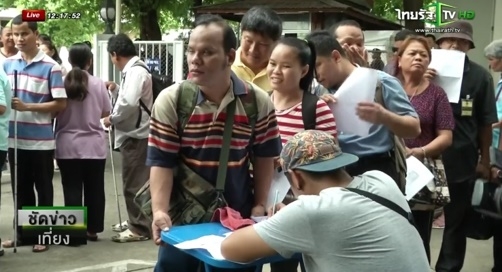 กลุ่มคนพิการต่อแถวยื่นขอโควตาสลากกินแบ่งรัฐบาลเพิ่ม