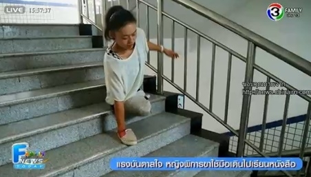 หญิงพิการขาใช้มือเดินไปเรียนหนังสือ