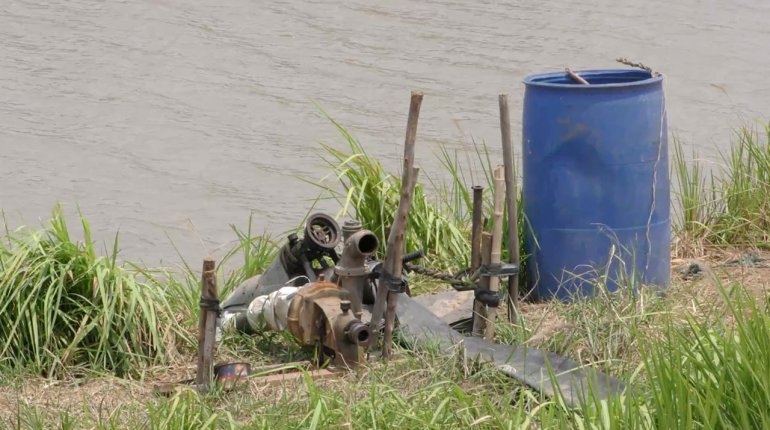 ชาวนาจำนวนมากที่แอบนำเครื่องสูบน้ำมาลักลอบสูบน้ำเข้านา เตรียมทำนาปรัง