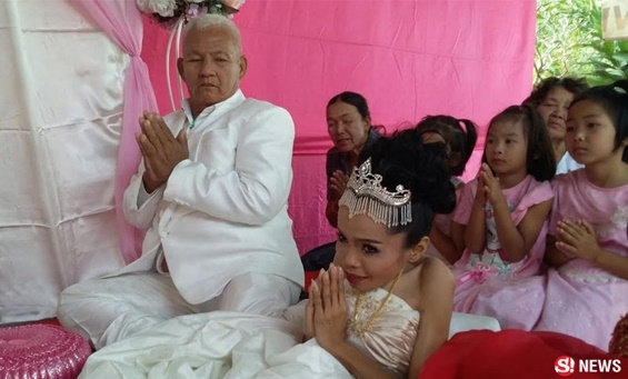 พิธีมงคลสมรสของนายบัญชา สาบุญธรรม อายุ 64 ปี กับนางสาวจรูญศรี ศรีมันตะ อายุ 37 ปี เจ้าสาว