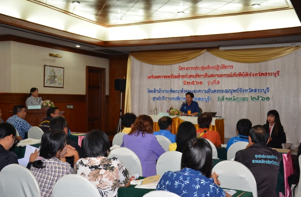 สไลด์โชว์ จ.สระบุรี จัดประชุมเชิงปฏิบัติการเตรียมความพร้อมและซักซ้อมการอพยพสำหรับคนพิการในสถานการณ์ภัยพิบัติ