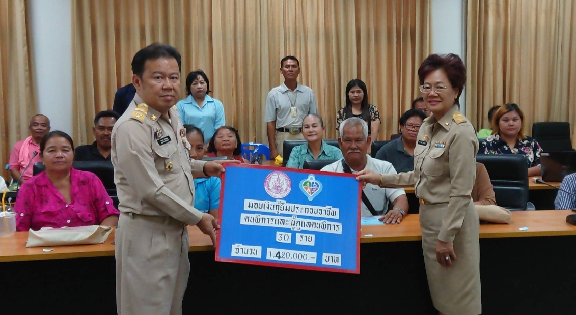 รองผู้ว่าฯ จ.ระยอง มอบเงินกู้ยืมประกอบอาชีพแก่คนพิการแลผู้ดูแลคนพิการเพื่อเป็นทุนในการประกอบอาชีพเลี้ยงดูครอบครัว