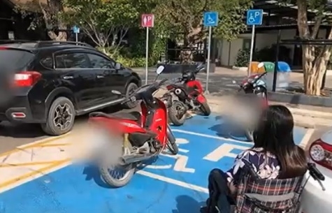 จยย.จอดในที่จอดรถคนพิการกีดขวางทางขึ้นลง