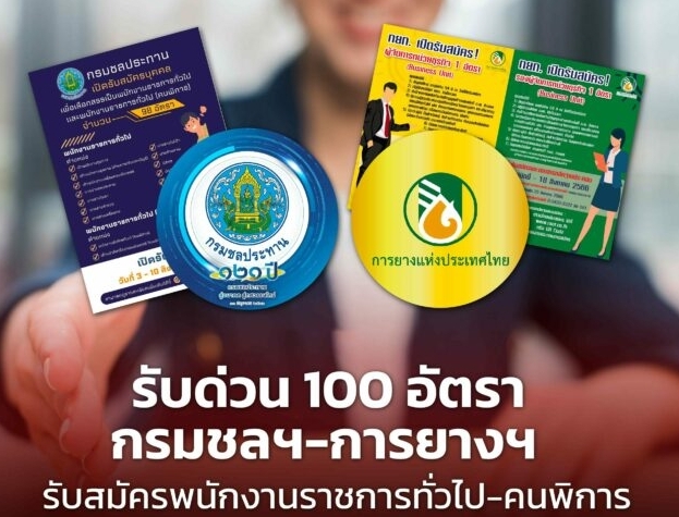 รับด่วน 100 อัตรา กรมชลฯ-การยางฯ รับสมัครพนักงานราชการทั่วไป-คนพิการ