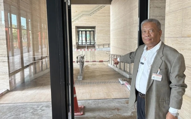 สภา 2 หมื่นล้านสุดเละเทะ พื้นไม้ตะเคียงทองปลอมผุ เพดานรั่ว น้ำขังปลั๊กไฟ เขื่อนกั้นน้ำขวางทางรถเข็นคนพิการ